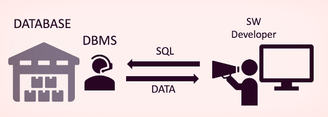 - DBMS와 소통하기 위한 언어가 SQL로서 DBMS가 사용자의 의도에 맞게 일을 수행하도록 한다.